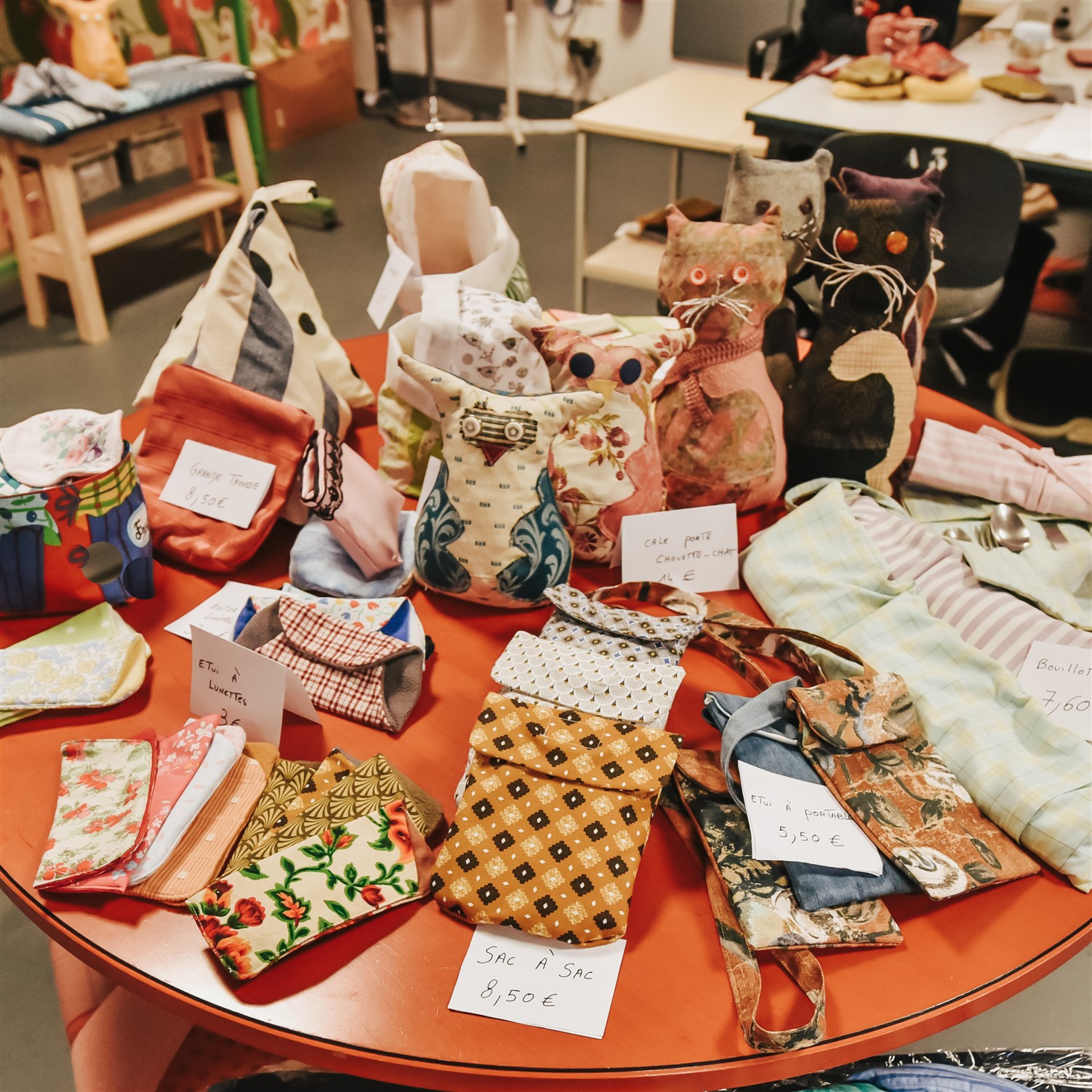 • Couture création : sacs à main, sacs de courses pliables, étuis à lunettes, panières, trousses, sacs à tarte, débarbouillettes, bouillottes naturelles, sacs de travail.